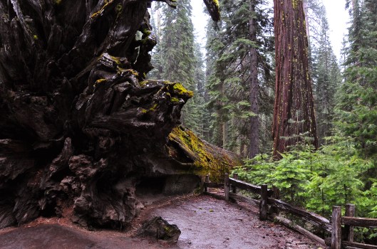 This image presented unique photographic challenges. I wanted to capture the “feeling” I had in the Mariposa Grove of sequoias, in a cold June rain, as a small being among these giants that have endured three generations of “guests” in the forest. So, Time was one quality to capture. Lighting was another issue. How does a photographer render the many shades of “black” in the tangled ancient roots from this tree…a root ball almost three stories tall…while capturing the array of greens from the moss and surrounding forest, without the image being “blown out” by the sky? I also wanted the image to portray the dimension of size, comparing this mammoth to its surroundings, like the old, broken trail fence and the new growth of young trees. So often, nature is impossible to replicate. A photographer can only do his best.